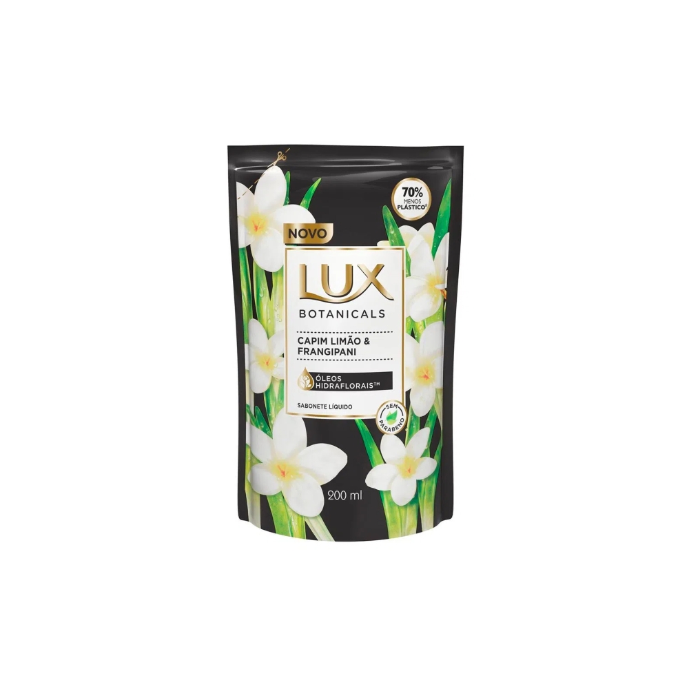 O que é: O Sabonete Líquido Lux com Óleos Hidraflorais Capim-Limão & Frangipani é formulado com fragrâncias e ingredientes inspirados na natureza. Possui óleos hidraflorais e glicerina. Sem parabenos.