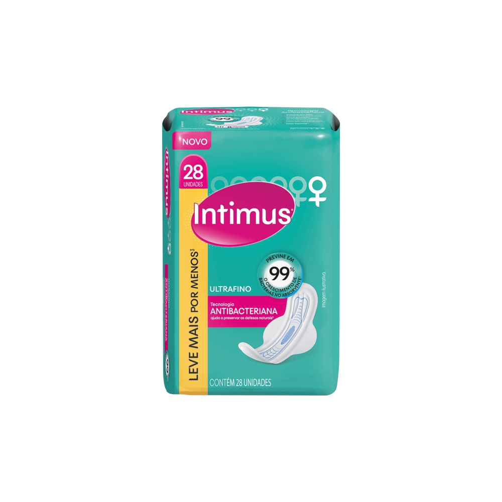 O novo Intimus Ultrafino Antibacteriano conta com um formato confortável para melhor uso diário, além de ajudar a preservar as defesas naturais da zona íntima da mulher, ele conta com a tecnologia antibacteriana, que previne 99% o crescimento de bactérias no absorvente.