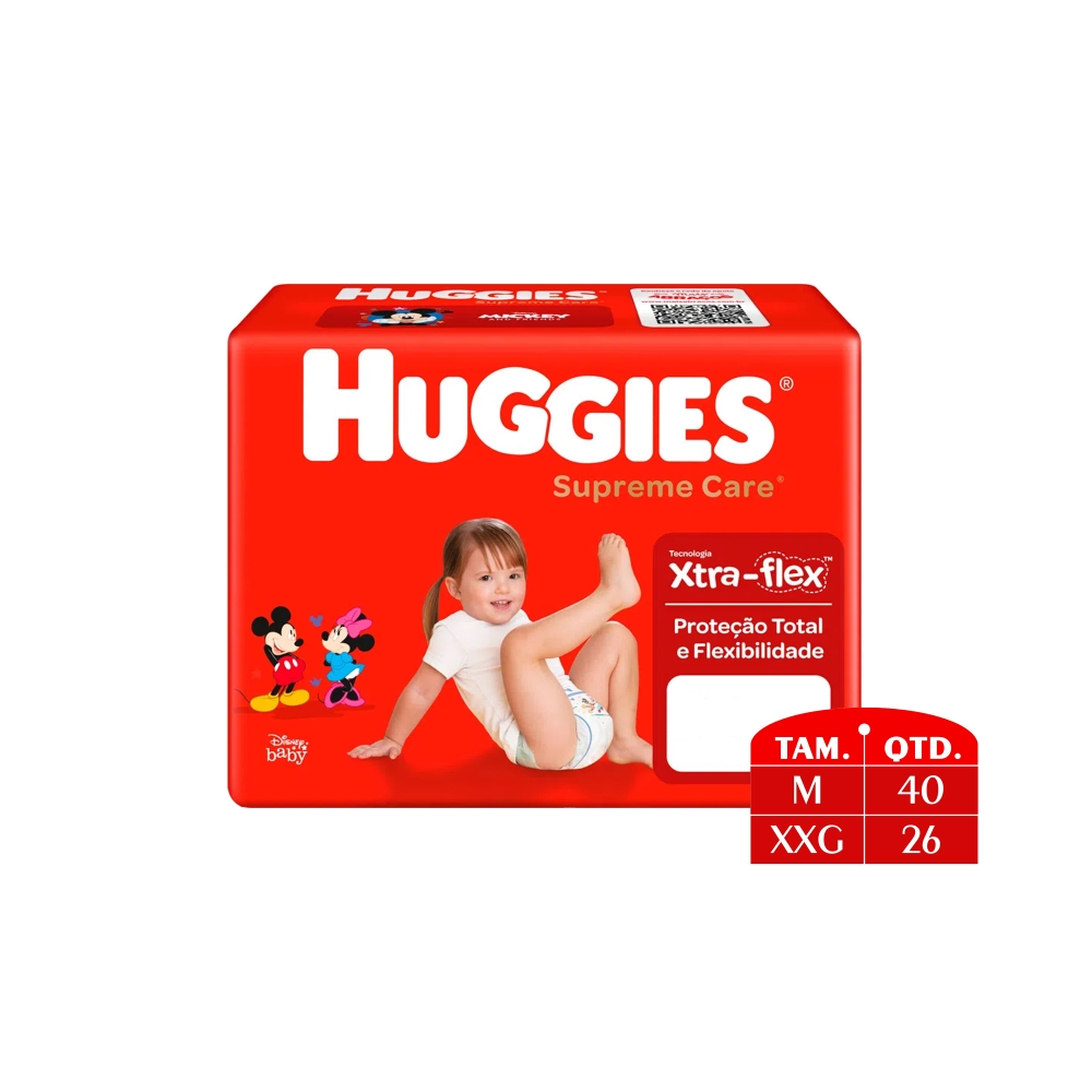 Inspirada nos seus abraços foi criada Huggies Supreme Care: Com exclusiva camada de proteção MaxiSec, absorve o xixi e mantém até 3x mais seca. Máximo conforto e proteção da barriguinha até as costas com cintura elástica e 4 pontos de ajuste.